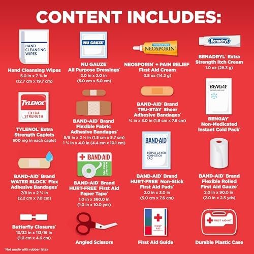 - Trusted Ingredients: Features Band-Aid adhesives, Neosporin cream, Benadryl itch relief, and even gloves for hygienic care, making it suitable for outdoor survival or daily travel essentials.