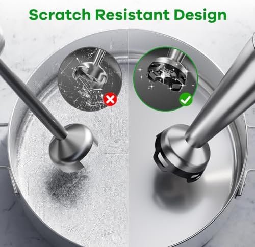 Use a deep pot to minimize splashes and operate on low speed at first. The nylon blade guard prevents scratching and ensures safe, smooth blending of hot ingredients.