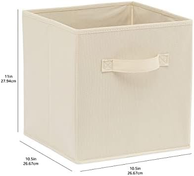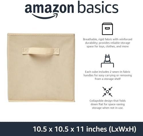 Keep your home clutter-free with the Amazon Basics Collapsible Fabric Storage Cubes Organizer, a pack of six sturdy, lightweight bins perfect for any space. Featuring easy-carry handles and breathable fabric, these beige cubes are ideal for organizing clothes, toys, or office supplies, supporting up to 5 lbs each. Versatile for use as open bins or drawers in organizers, they combine functionality and style, making them a must-have for tidy, efficient living.